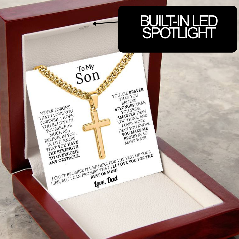 The Message Says: "TO MY SON - never forget that I love you forever. I hope you believe in yourself as much as I believe in you. In every step you take in life, know that you have the strength to overcome any obstacle. You are braver than you believe, stronger than you seem, smarter than you think. And loved more than you know. You make me proud in so many ways. I can't promise I’ll be here for the rest of your life, but I can promise that I'll love you for the rest of mine. LOVE, DAD."